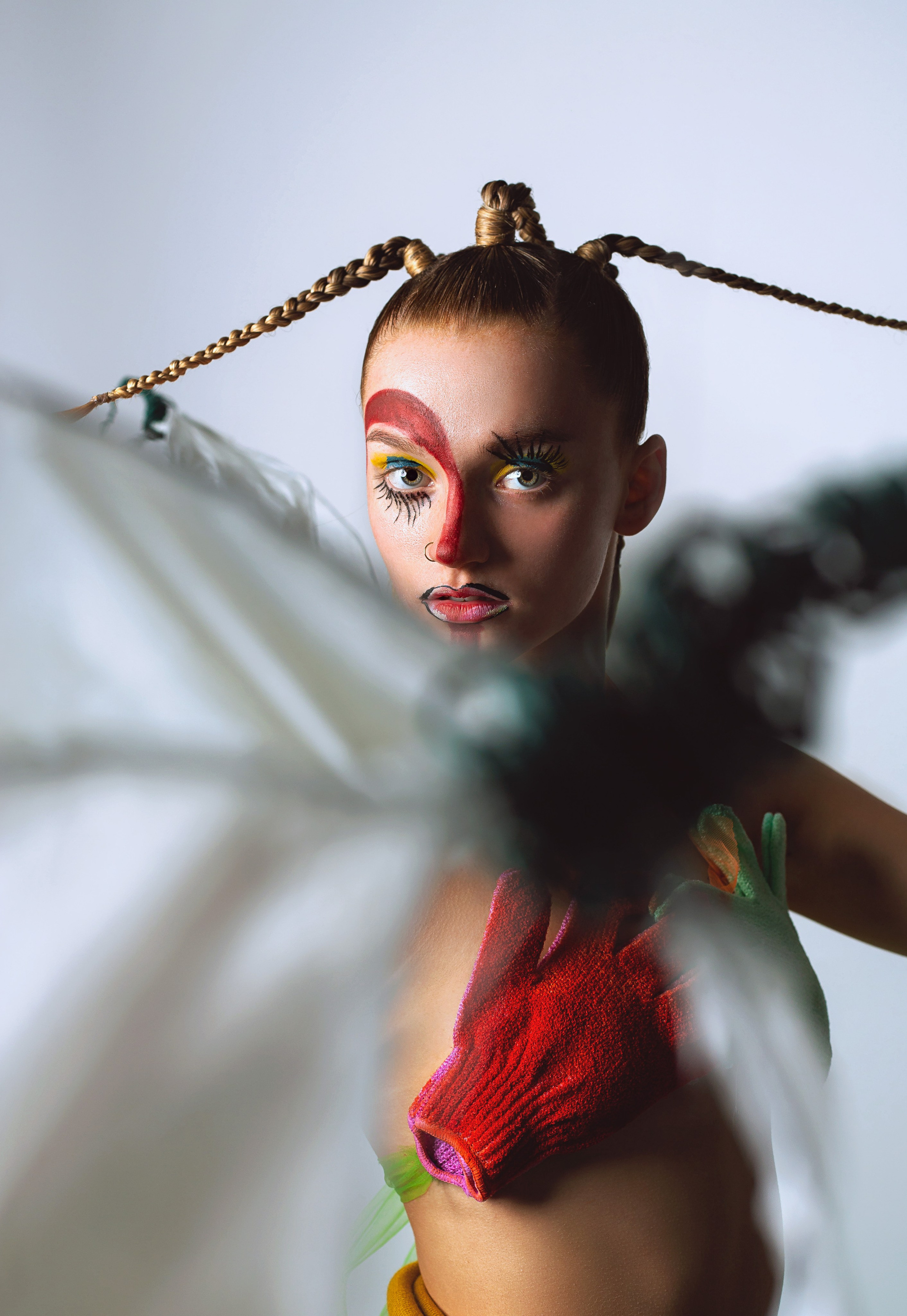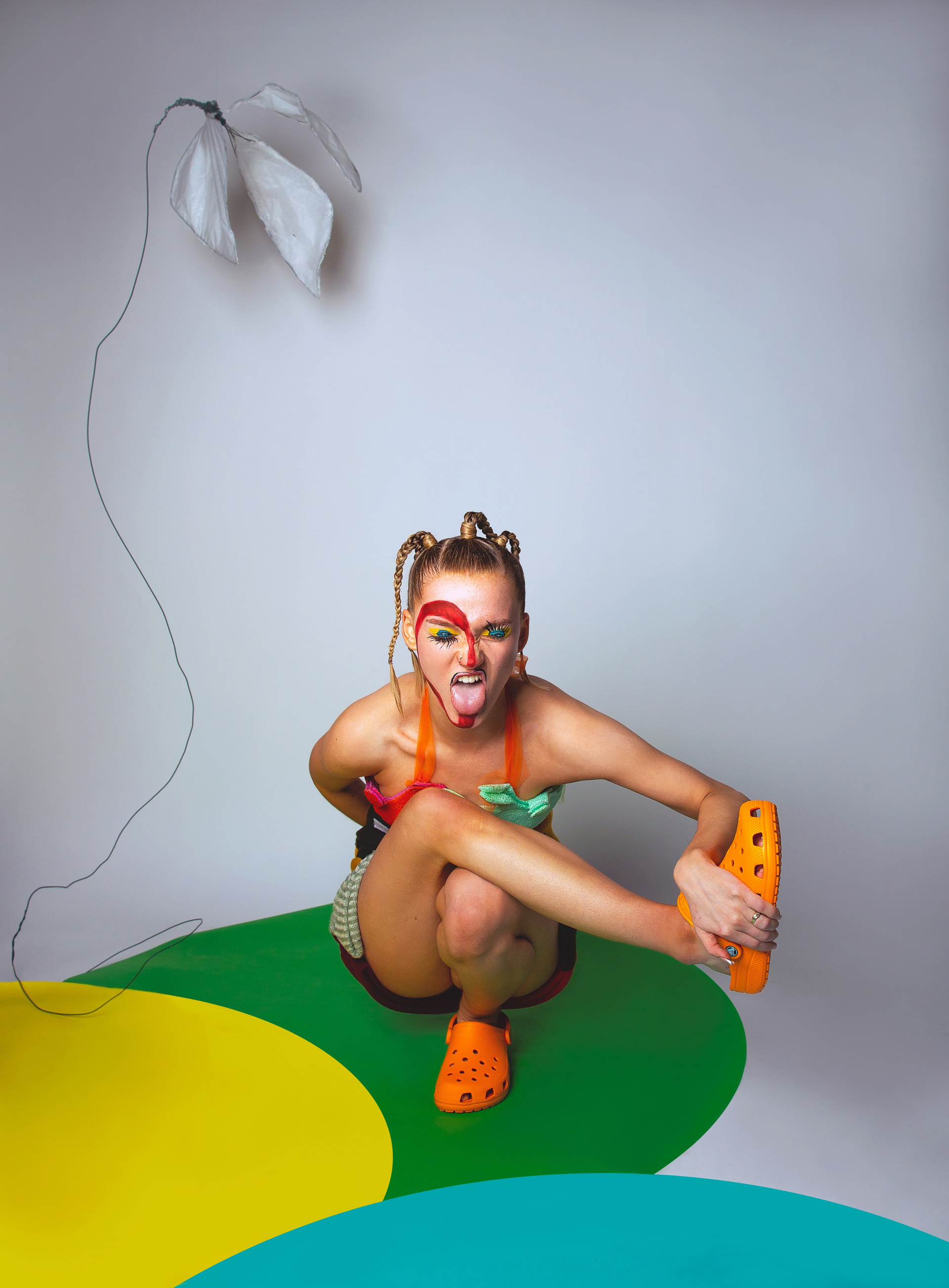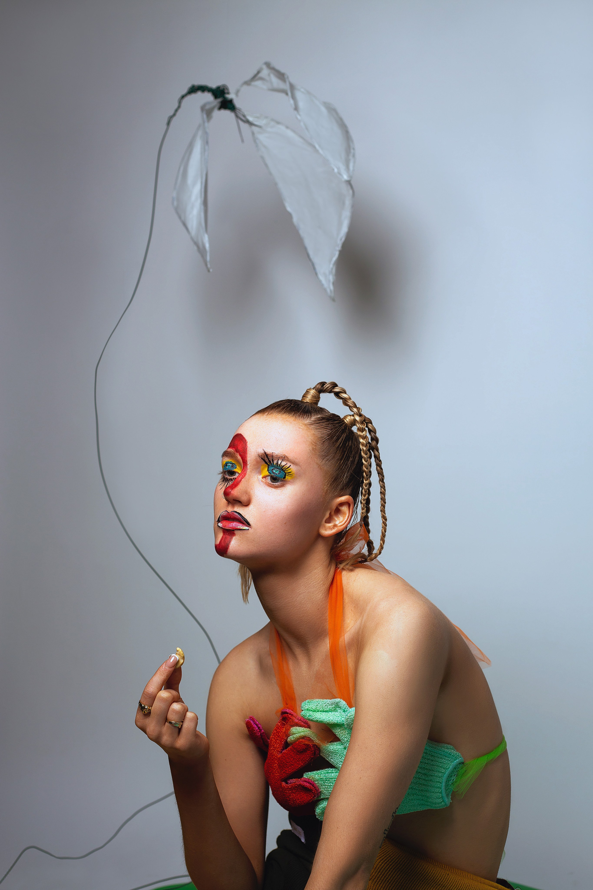 We met up for a coffee where we brainstormed some creative ideas before going out and thrifting. Whilst thrifting, we discussed issues regarding sustainability and overconsumption. For example, brands greenwashing and the struggle to become sustainable in a world infested with fast fashion brands. As a result, we decided to base our photoshoot on this “sustainability confusion.” That’s when we established the term “Thrift Flip.” We wanted to flip our thrift and create an editorial with a meaning behind it, an editorial that will have people thinking and questioning the future of sustainability. From the hair and makeup down to the garments made by me (@madebynale), we wanted to conduct everything sustainably.