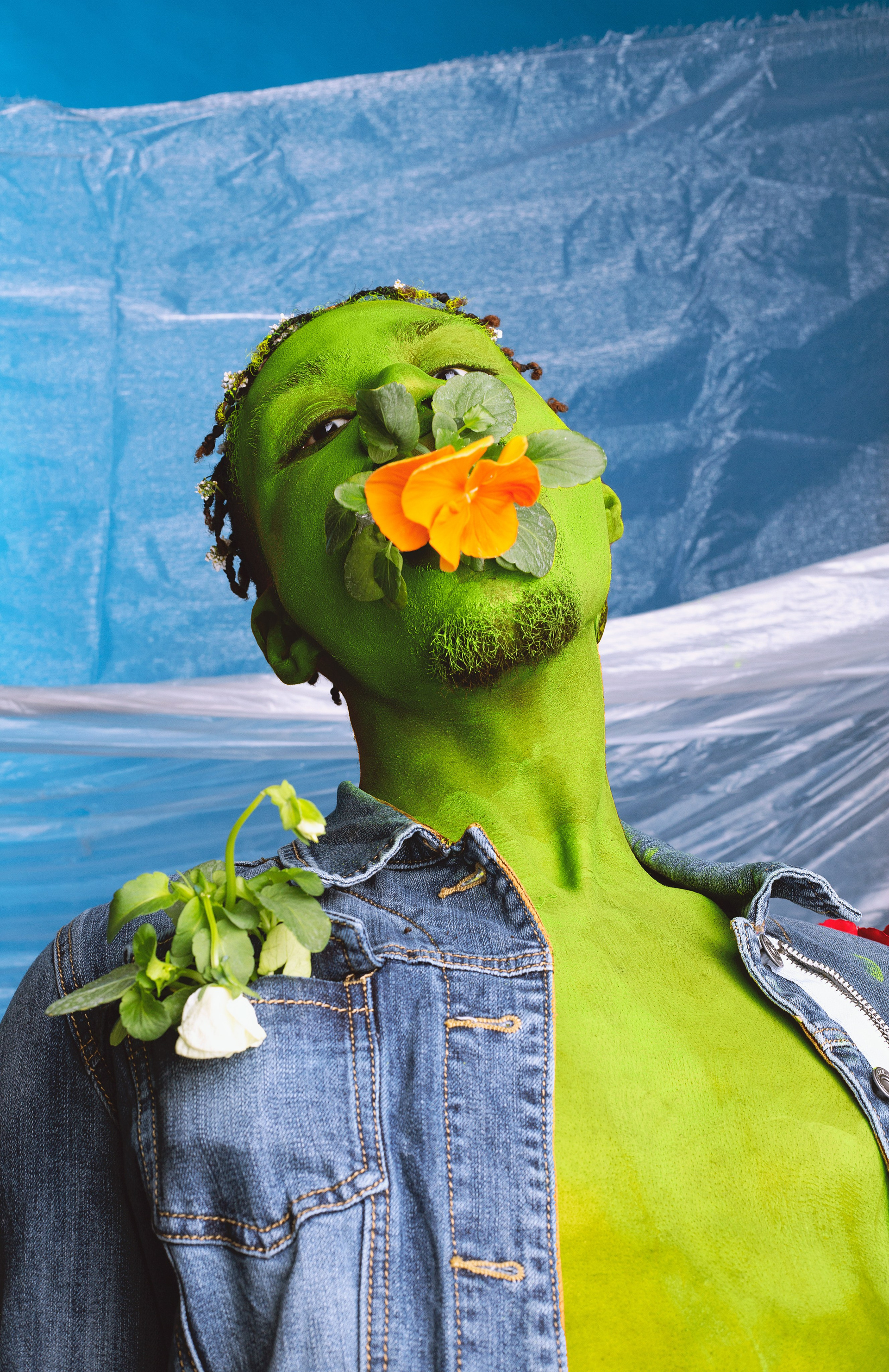 Whilst Sonny, our male model, channels a confident person who has worked incredibly hard to change their fashion style and become a lot more sustainable. Sonny lives, breathes, and eats sustainability, hence the plants growing out of him as seen in the NFTs. Sonny’s character is so sustainable to the point where he is turning green. We wanted to incorporate denim into the look, as denim is known for its extremely long longevity, which from my perspective represents the future of sustainability — it’s here, and it’s here to stay. Do you consider yourself a Sonny or an Ela?